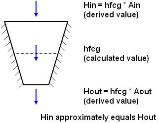 The calculated value for the heat flux at the centroid (hfcg) is used to calculate the heat rate of the face (H) as follows: