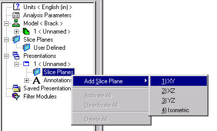 The remaining commands in the Slice Plane context menu of the browser are as follows:
