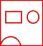 Imagine that the three holes in Figure 1(a) are to be filled with another material (and for discussion, assume that everything shown in the figure is drawn on part 1). A rectangle drawn on part 2 and over top of the rectangular hole in part 1 would fill the rectangular hole. A circle would be drawn on part 3 to fill the circular hole, and a semi-circle would be drawn on part 4 to fill the semi-circular hole.