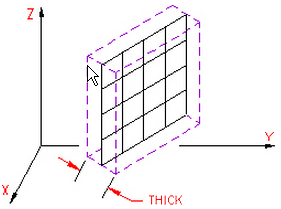 When using membrane elements, you must define the thickness of the part in the Thickness field of the Element Definition dialog box. The element is considered to be drawn at the midplane of the membrane element. Therefore, half of the entered value for thickness are considered on top of the element while the other half are below the midplane. Enter a value for the thickness to run the analysis.