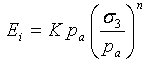 where Kur is the unloading-reloading modulus number and is always greater than the primary loading modulus number K. The modulus exponent for unloading-reloading is same as in primary loading.