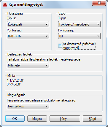 Megjelenít egy mintát az aktuális beállításokról az egységekhez és a szögekhez.