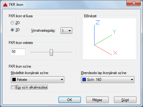 Vezérli az FKR-ikon színét modelltérbeli nézetablakokban.