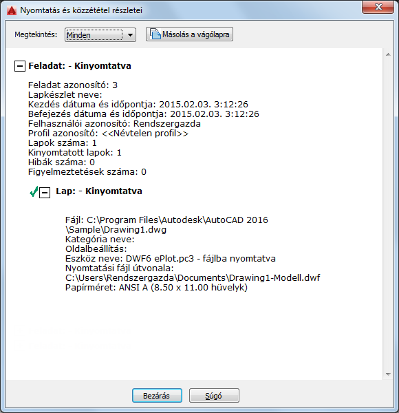 Információt jelenít meg az összes befejezett nyomtatási és közzétételi feladatról és az azokon a feladatokon belüli lapokról.