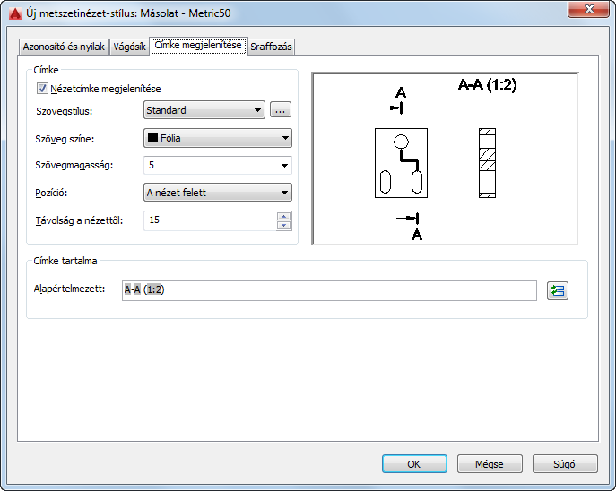 - A metszetinézet-címke elhelyezését adja meg a metszeti nézethez képest.