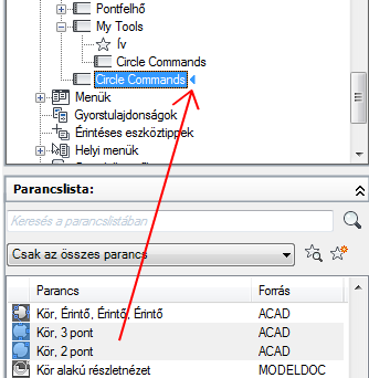 A Parancslista területről húzza a hozzáadni kívánt parancsot a <fájlnév> testreszabási beállításai területen lévő eszköztár-leporellóhoz.