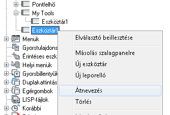 Kattintson a jobb gombbal az Eszköztár1 nevű eszköztárra, ne a leporellóra. Kattintson az Átnevezés gombra, és adjon meg egy új nevet.