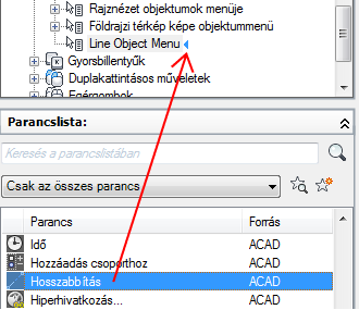 Ha az aktív parancshoz kapcsolódó menüelemeket szeretné beilleszteni egy helyi menübe, akkor adja meg a COMMAND_parancsnév álnevet. A parancsnév szövege bármilyen érvényes parancs neve lehet. Ha például azt szeretné, hogy a helyi menü elemei akkor jelenjenek meg, amikor a VONAL parancsot használja, adja meg a COMMAND_VONAL álnevet.