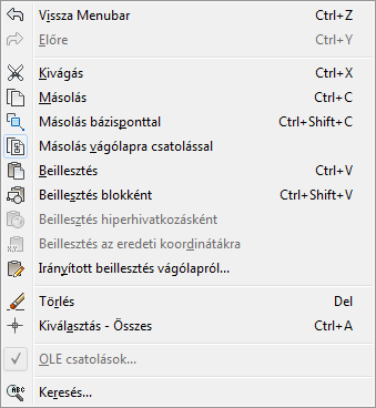 A következőben egy példa látható a Szerkesztés menüben található, pipával megjelölt OLE csatolások menüelemről, valamint a Másolás vágólapra csatolással menüelem képéről, amely egy kerettel van kiemelve.