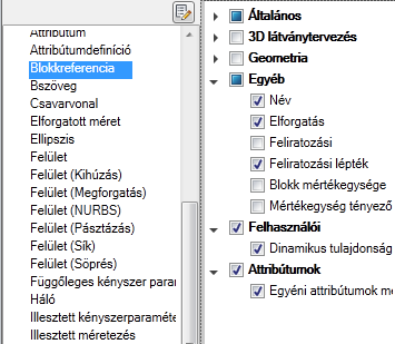 Blokkreferenciák felhasználói tulajdonságai és attribútumai megjelenítésének vezérlése