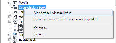 A Gyorstulajdonságok alapértelmezett beállításainak visszaállítása