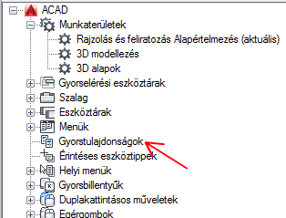 A Gyorstulajdonságok palettán megjelenő tulajdonságok testreszabhatók.