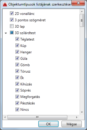 Az Objektumtípusok listájának szerkesztése párbeszédpanelen kattintson azokra az objektumtípusokra, amelyek esetén tulajdonságokat kíván megjeleníteni a Gyorstulajdonságok palettán.