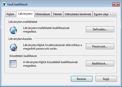 Vault beállítások lehetőségre. Látványtervmellékletek