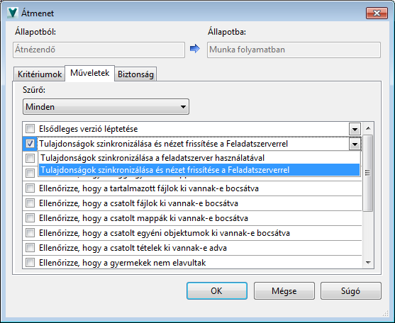 - Jelölje be a Tulajdonságok szinkronizálása és a nézet frissítése a Feladatszerver használatával jelölőnégyzetet az Elérhető műveletek listában.