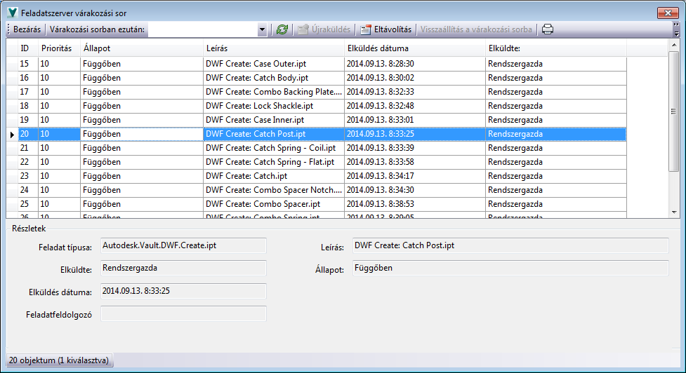 A feladatszerver várakozási sora a kliensek (Inventor, AutoCAD, Vault és Autoloader) által küldött, feldolgozásra váró feladatok listája, avagy várakozási sora. Ezt a sort a Vault szerver tárolja és kezeli.