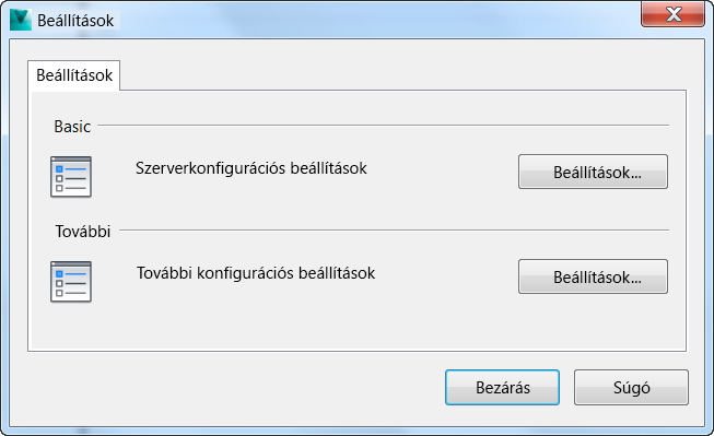 A Beállítások párbeszédpanel segítségével konfigurálhatja a szerver hitelesítő adatait és a további szerver beállításokat, például a megszemélyesítő felhasználói fiókot, az időtúllépési küszöbértéket, és a megőrzendő konzol és szerver naplófájlok számát.