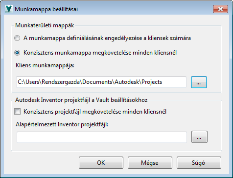 Az Autodesk Inventor Vault tárban használt projektfájlját a rendszergazda határozhatja meg.