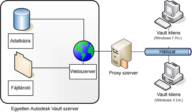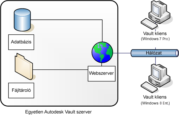 Az Autodesk Vault szerver valójában egy webes alkalmazás, amely szolgáltatások segítségével kezeli a kommunikációt a kliensek és a webes szolgáltatásokat tartalmazó szerver között. A kliensek és a szerver közötti kapcsolat hasonlít ahhoz, ahogyan a webböngésző kommunikál egy hellyel az interneten. A webszolgáltatások szabványos HTTP metódusokat használnak, alapértelmezés szerint a webszerver 80-as portján keresztül kommunikálnak. Többfelhasználós konfigurációhoz Microsoft IIS szükséges.