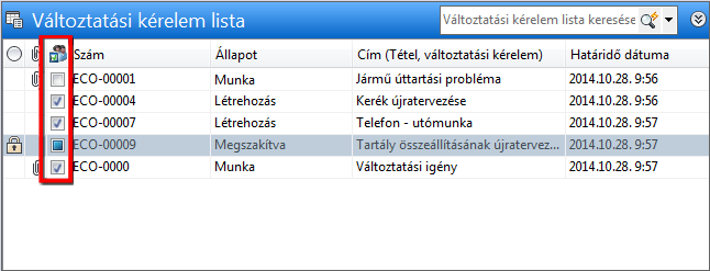 Ez egy speciális tulajdonság, amely megmutatja a változtatási kérelmekhez rendelt tételek állapotát. Az állapot a fő Változtatási kérelem listaablakban látható, és három értéket vehet fel: