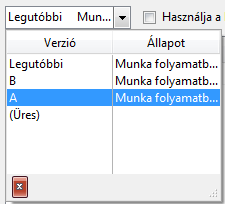 Megjeleníti a fájl összes elérhető revízióját. Válassza ki a lefoglalni kívánt revíziót a legördülő menüből. A vezető revízió legfrissebb verziója automatikusan kiválasztásra kerül, ha a Legutóbbi opciót választja a legördülő menüből, illetve ha több fájlt jelöl ki lefoglalásra.