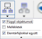 Automatikusan kiválasztja az összes, a Lekérés párbeszédpanelen felsorolt objektumot, vagy csak az eredeti objektumokat, amiket a Lekérés párbeszédpanel indítása előtt választott ki. Ez a funkció akkor hasznos, ha engedélyezte a Gyermekekkel, szülőkkel vagy csatolásokkal együtt gombokat, és gyorsan szeretné a kapcsolódó objektumokat kijelölni a lefoglaláshoz. Tipp: Mozgassa a kurzort az ikon felé, így bármikor megtekintheti az aktuális beállításokat.