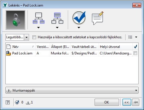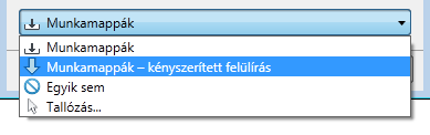 Munkamappák legördülő menü