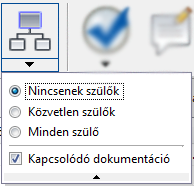 Válthat a megadott szülőfájlok vagy kapcsolódó dokumentumok bevonása és a szülőfájlok és kapcsolódó dokumentumok kihagyása között a lefoglaláskor. Kattintson a Szülőkkel együtt gombra a megadott szülőfájltípusok vagy kapcsolódó dokumentumok hozzáadásához a fájlok aktuális listájához.