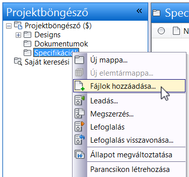 - Kattintson a jobb gombbal arra a Vault mappára, amelyhez a fájlt hozzá kívánja adni, majd válassza a Fájlok hozzáadása lehetőséget. Megjelenik egy fájlböngésző.