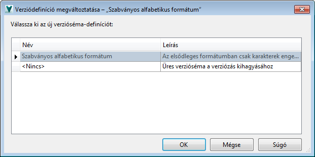 - A Verzióséma-definíció módosítása párbeszédpanelen válassza ki azon új verziósémát, amelyet hozzá kíván rendelni a kiválasztott fájlhoz. Kattintson az OK gombra.