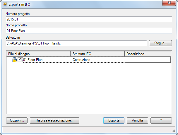 - In Nome progetto, se necessario, modificare il nome. Per default, viene visualizzato il nome del disegno esportato.
