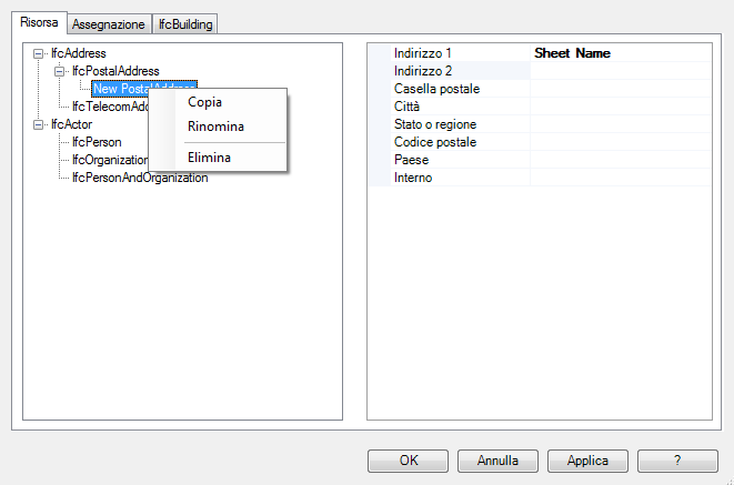 Nella finestra di dialogo Risorsa e assegnazione IFC, nella scheda Risorsa, selezionare istanza della risorsa IFC che si desidera modificare.