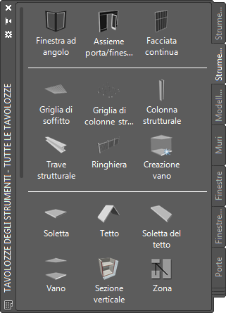 Le tavolozze degli strumenti di default dell'area di lavoro contengono degli esempi di strumenti Tetto che si possono utilizzare e personalizzare a piacere. Inoltre, i seguenti cataloghi forniti con il software contengono gli strumenti Tetto da aggiungere alle tavolozze degli strumenti: