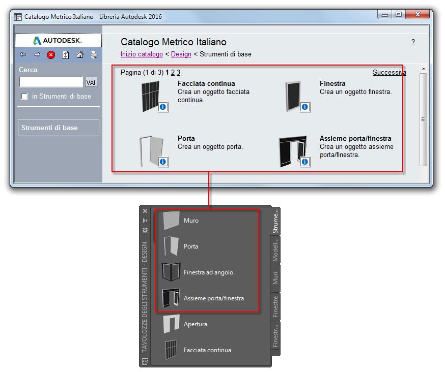 Per collegare uno strumento da un catalogo della Libreria ad una tavolozza degli strumenti in AutoCAD Architecture, attenersi alla procedura indicata di seguito.