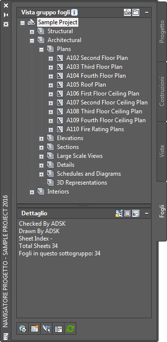 Quando si crea un nuovo progetto, viene creato un gruppo di fogli di progetto univoco che viene visualizzato nella scheda Fogli del Navigatore progetto.
