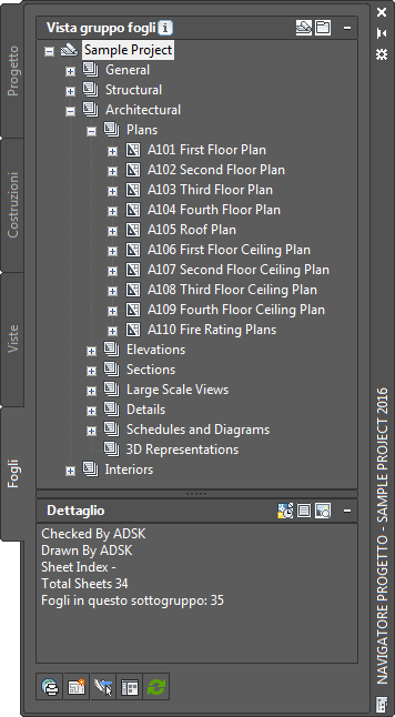 In AutoCAD Architecture ad ogni progetto corrisponde un gruppo di fogli del progetto che contiene tutti i fogli del progetto stesso.