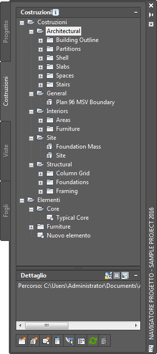Una costruzione descrive una porzione univoca di un edificio ed è assegnata ad uno specifico livello e ad una specifica divisione del progetto. Le costruzioni estese, ad esempio i pannelli facciata continua, possono essere assegnate a più livelli e divisioni.