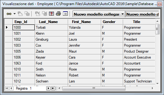 Dopo aver configurato una fonte dati, è possibile visualizzare i record di database direttamente dal programma mediante la finestra Visualizzazione dati.