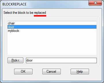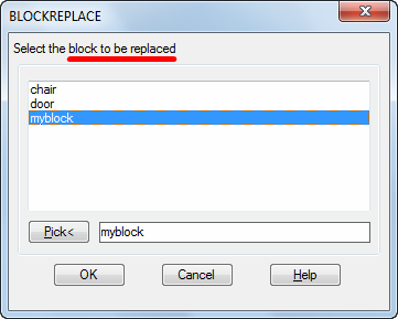 BLOCKREPLACE esegue la ricerca di un blocco specificato nell'intero disegno e lo sostituisce con un altro blocco specificato. Dopo la sostituzione, è possibile utilizzare il comando ELIMINA per eliminare dal disegno la definizione di blocco senza riferimento.