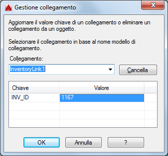 Gestione collegamento (selezionare un oggetto grafico collegato)