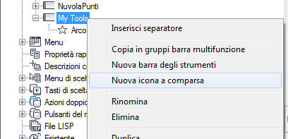 Viene creata una nuova icona a comparsa sulla barra degli strumenti e contemporaneamente viene creata la nuova barra degli strumenti in base al menu a discesa utilizzato.