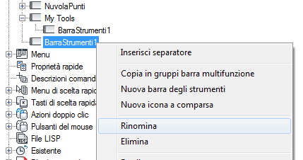 Viene creata una nuova barra degli strumenti, denominata BarraStrumenti1, e una nuova icona a comparsa che fa riferimento alla barra degli strumenti viene posizionata nella parte inferiore della barra selezionata.