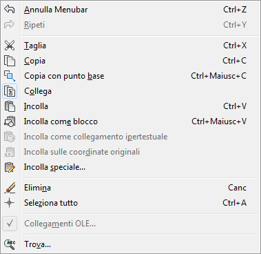 Di seguito è illustrato un esempio della voce di menu Collegamenti OLE del menu Modifica contrassegnata da un segno di spunta e dell'immagine della voce di menu Collega evidenziata da un bordo attorno ad essa.