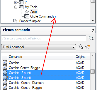 Nel riquadro Elenco comandi, trascinare il comando da aggiungere al sottomenu della barra degli strumenti nel riquadro Personalizzazioni in <nome file>.