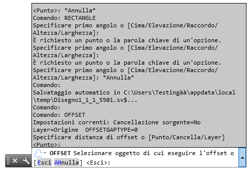 Se la finestra dei comandi non è ancorata, premere F2 per espandere un elenco di comandi e messaggi di richiesta utilizzati verso l'alto o verso il basso dalla riga di comando.