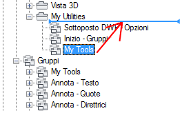 Tra i gruppi della barra multifunzione, viene visualizzato un indicatore nella posizione in cui verrà inserito il gruppo al rilascio del pulsante del dispositivo di puntamento.