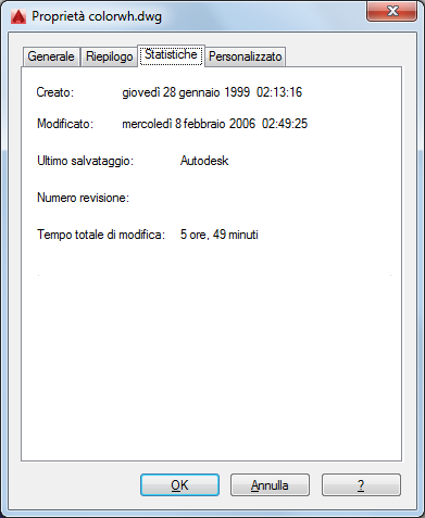 Queste proprietà del file sono utili per cercare disegni creati o modificati durante un determinato periodo di tempo.