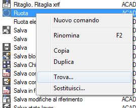 1. Nel riquadro Elenco comandi della scheda Personalizza, fare clic con il pulsante destro del mouse in un punto qualsiasi dell'elenco di comandi. Fare clic su Trova.