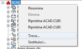1. Nella scheda Personalizza, nel riquadro Personalizzazioni in <nome file>, fare clic con il pulsante destro del mouse in un punto qualsiasi della struttura. Fare clic su Trova.