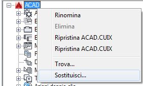 1. Nella scheda Personalizza, nel riquadro Personalizzazioni in <nome file>, fare clic con il pulsante destro del mouse in un punto qualsiasi della struttura. Fare clic su Sostituisci.